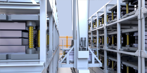 智能模庫系統 針對模具特性,我司專門開發(fā)的模具立體庫,具有承載負荷大,穩(wěn)定可靠;通過倉儲貨架和后臺控制系統操作,不僅節(jié)省存儲空間,而且在倉儲物資調撥過程中全方位實時管理,更加便捷高效。