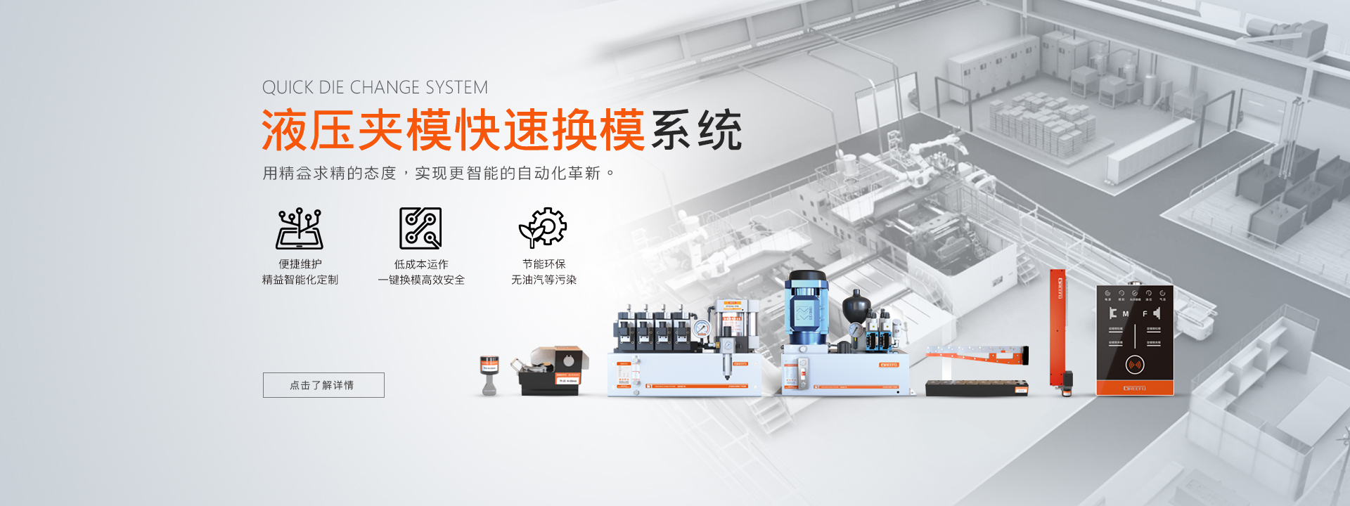 液壓快速換模系統 格萊富注塑機快速換模系統采用 TY 夾模器,以油壓驅動取代舊式固定夾的方式,不需要在模產過程中,短時間內輕易完成換模作業(yè),更省時省力。目前已在家電,汽車、機械等行業(yè)豐富應用
